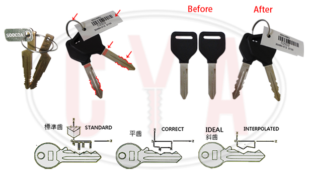 3.Double side bitting (with burs scraping while pulling out he bitten key)
