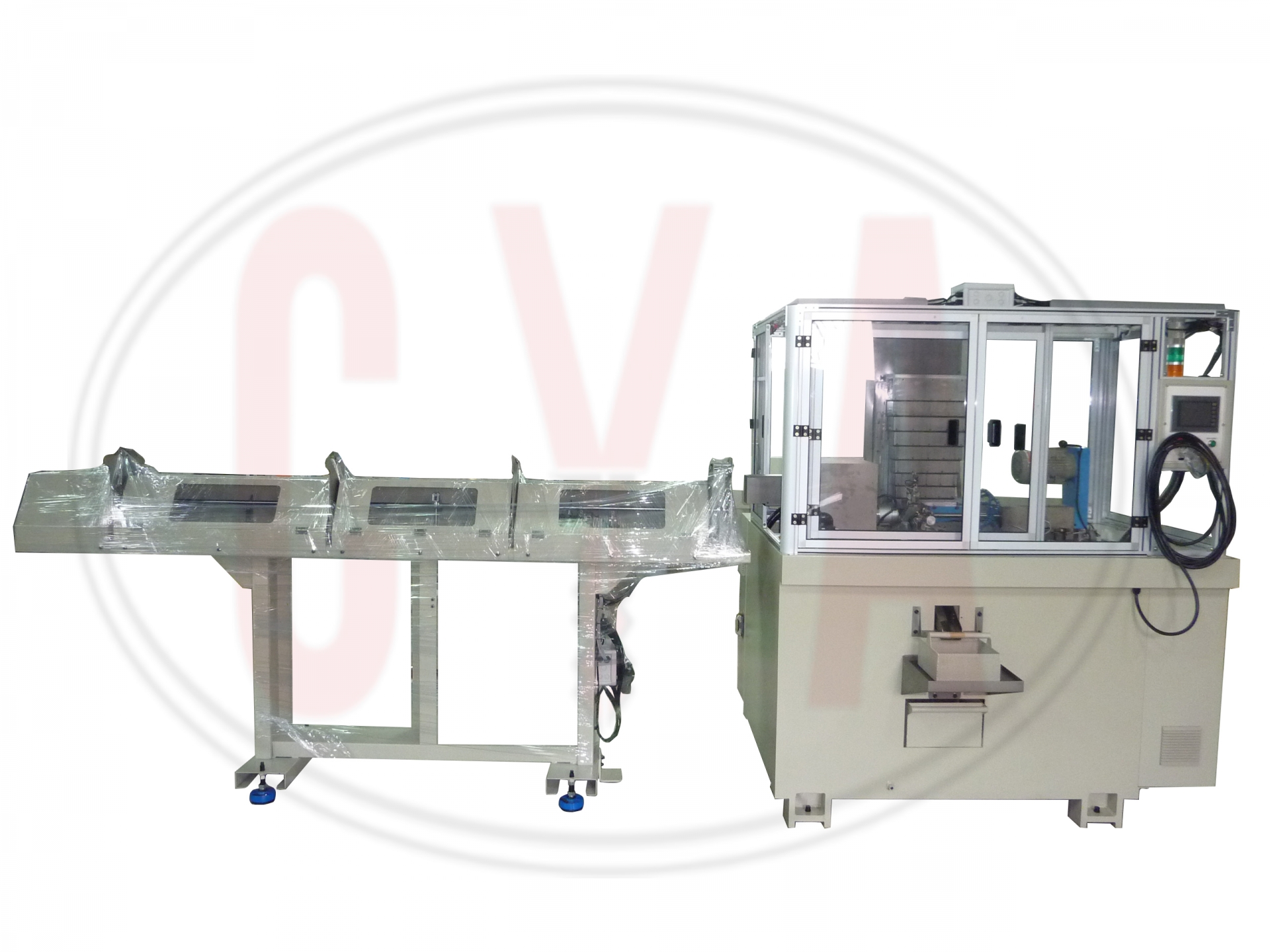 This automatic machine is designed for making padlock’s bolt depending on different geometry and length. Operator only need to load brass bars into the automatic bar feeder. The length of brass rod is precisely controlled and fed automatically into cutting position inside the machine. Bolt is formed and cut by milling spindles and 1 drilling spindle. Finished bolts are unloaded to the chute. Different tooling are available for different types of bolts. The machine uses wet machining to reduce the temperature of milling process and enlarge the cutter’s life span. HMI screen is easy and operation-friendly for control and troubleshooting.
