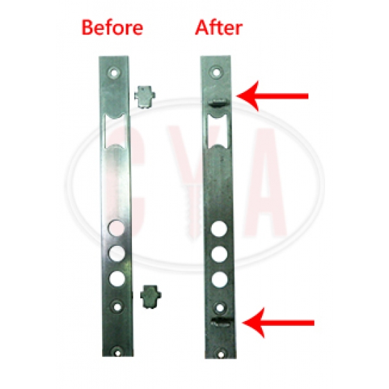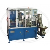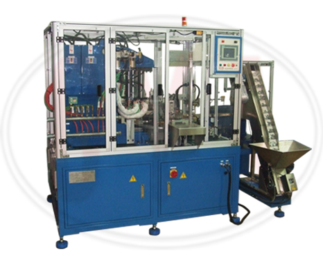 Lock plate welding machines weld the mounting tabs to the front face plate of a mortise lock housing. A vibratory feeder bowl automatically loads the plates and the tabs. The welded assemblies are automatically unloaded to a chute. The machine is fully automatic to feed front plates and attached plates. The small plates are fed by 1 set of elevator feeder, bowl feeder and linear track while the front plates are fed by magazine stacker on the separate stations. The 3 parts (1 front plate+2 small plates) will be loaded precisely in position on the round index and welded on the welding station. The welded parts unload automatically to the chute.