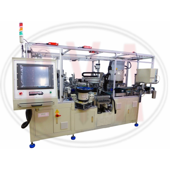 This machine is the combination of W30 and W200. Wafer (tumbler) assembly machines load springs and wafers (tumblers) into both sides of plugs (barrels). Possible options include the following: marking of the front of the plug (barrel) using a single-point CNC marker, de-burring of the wafer (tumbler) and spring cavities, testing of the lock function with a master key, and testing the lock function with a change key. Expanded features may include the following: adding caps to the plug (barrel), installing seal rings (O-rings), and adding actuators.