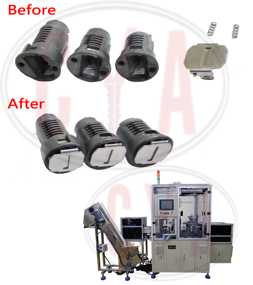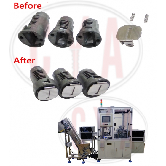 This machine is for assembling the barrel, the springs, the barrel cover or the clip together. The 3 or 4 main parts are fully automatic loaded to the fixture or on the parts by auto feeder. Also, with the detecting function, all the springs will fit in its right position. No faulty barrel will appear through this machine.