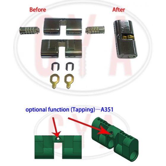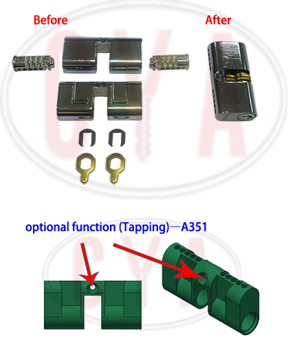 A350 Euro Type Cylinder PreassemblyA351 Euro Type Cylinder Preassembly with M5 hole tapping