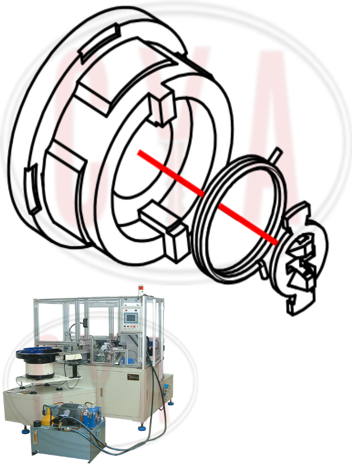 Spring set assembly machines are customized to assemble the required components. Cases and springs are loaded automatically by the feeder bowls. While assembling, the grease is fed on the springs and the springs rotated by the mechanism to the set position. The final assembly is automatically unloaded into a chute.