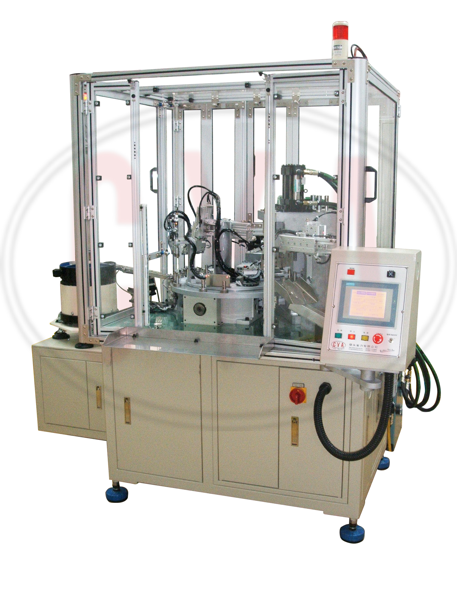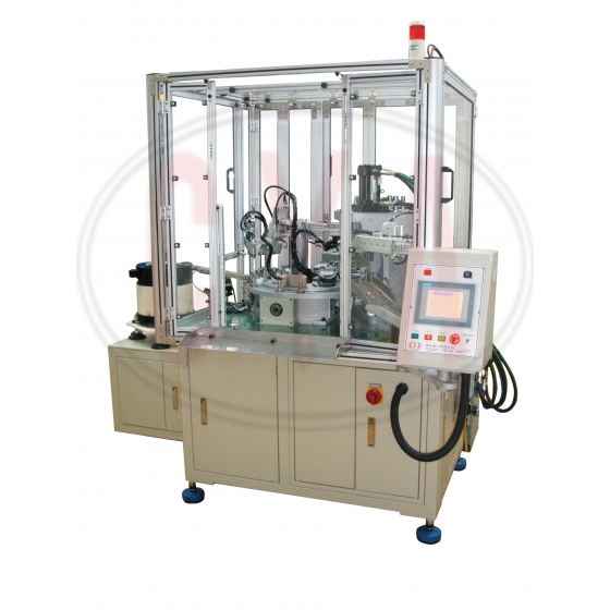 Lever shaft assembly machines are customized to assemble all required components of the lever shaft. Levers are loaded into the fixture by hands. Roses are manually loaded to the conveyor one by one. Then the chuck clamps the rose onto the fixture. After all the assembly works are done, there is one more testing station to check the finished assembled parts