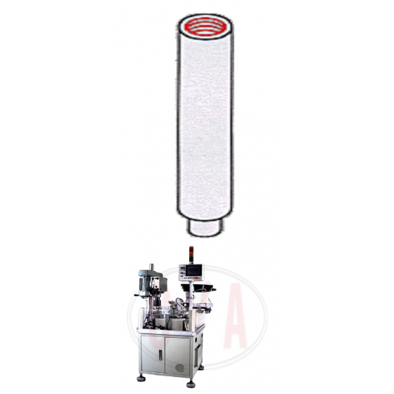 Tapping machines tap holes to the proper thread. A vibratory feeder bowl feeds the part to a nest. Depending on requirement for single or dual tapping head, the machine threads the hole (holes). Parts are automatically unloaded to a chute. Bowl feeder loading 2 tubes into the fixture in station 1 automatically. Then a 2-head tapping unit will do the tapping work. Also, in another station, a checking unit will check the tapping drill is broken or not in the tube. So, totally, the all finished Parts are checked 100%.